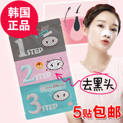 韩国正品holika猪鼻贴去黑头三部曲鼻膜去粉刺清洁收毛孔5贴包邮