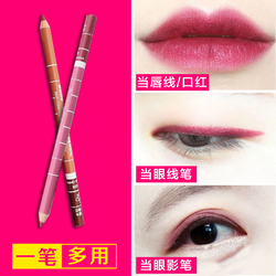 买一送一裸色防水耐汗不脱色晕染哑光唇线笔咖棕黑红眼线笔口红