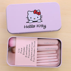 hello kitty化妆刷7件套装腮红刷铁盒彩妆工具刷子粉刷唇刷 包邮