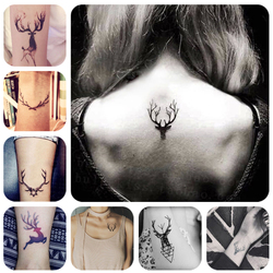 一套30张原创黑白森系鹿角 麋鹿之森原宿男女纹身贴 持久仿真贴纸