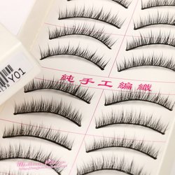 新款包邮 超自然裸妆交叉假睫毛手工磨尖逼真短款上睫毛硬梗 Y01