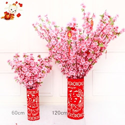 仿真桃花枝新年桃树场景布置单支桃花桃花支春节装饰树春节桃花枝