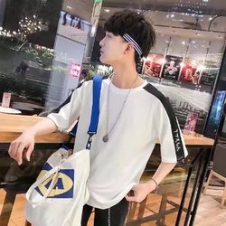 青少年夏季男士圆领休闲五分袖短袖时尚百搭T恤半袖衫高中学生潮