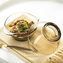 2件套北欧茶色玻璃碗米饭碗双耳沙拉碗麦片碗甜品碗家用耐热防烫