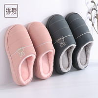 防水棉拖鞋女秋冬季室内居家用情侣保暖厚底毛毛家居拖鞋男士冬天
