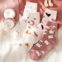 袜子女中筒袜秋冬季水貂绒加绒加厚毛巾袜保暖月子袜睡眠地板袜