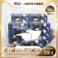 心相印品诺抽纸家用面巾纸蓝风铃香氛4层90抽16包