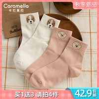 caramella袜子女ins潮网红秋冬季中筒长袜日系可爱纯色棉袜ulzza