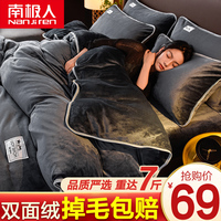 南极人珊瑚绒床品四件套冬季床单被套法兰绒牛奶绒秋冬床上三件套