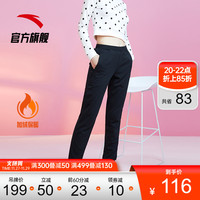 安踏运动裤女2021秋季休闲长裤针织直筒裤子春跑步收口束脚冬黑灰