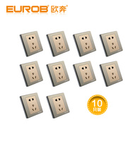 欧奔 开关 插座 10只五孔套装 E9不锈钢拉丝 电源插座 开关面板