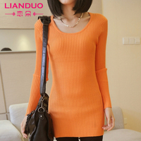 恋朵 秋冬新品 女装韩版圆领修身中长款针织衫套头打底衫打底毛衣
