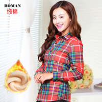 MJX 2014冬装新款加绒衬衫 女 长袖修身格子时尚保暖潮女衬衣女装