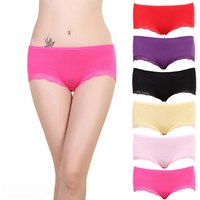5条装女士性感女莫代尔女内裤中低腰蕾丝边无痕 舒适气死纯棉