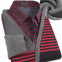雄天豹秋冬季男士格子加厚保暖衬衫 男 长袖休闲加绒磨毛衬衣男装