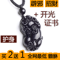 吉祥物聚财貔貅黑曜石项链吊坠 买二送一 送开光证书