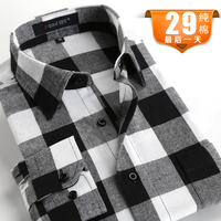 意宾纯棉 男士长袖衬衫 男士格子衬衫男长袖衬衣磨毛衬衫男装秋装