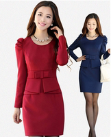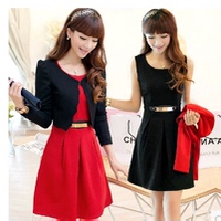 韩版大码女装连衣裙初秋装长袖假两件套套装裙女紧身包臀短裙女潮