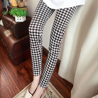 经典黑白格 千鸟格打底裤九分小脚裤 紧身裤 弹力裤 印花打底裤
