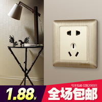 西蒙墙壁开关插座面板正品特价86型二三插5五孔插座 香槟金色拉丝