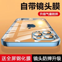 适用苹果13pro手机壳14新款透明iphone13高级14plus感超薄13promax全包防摔12自带镜头膜一体十三14pr