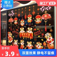 2022新年装饰品虎年窗花贴纸春节布置福字过年静电橱窗玻璃门贴画