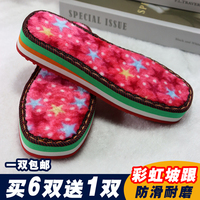 长毛绒坡跟高跟手工编织勾棉鞋钩毛线拖鞋防滑耐磨橡胶鞋底子女士