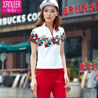 运动套装女装夏装2015大码时尚运动服短袖长裤休闲套装女夏两件套