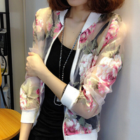 夏季新款防晒衣女长袖印花超薄短外套欧根纱防紫外线开衫防晒服女
