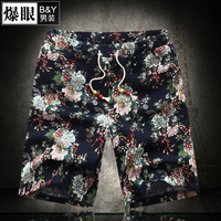 爆眼夏装新款男士碎花短裤加肥加大码印花五分裤肥佬大号宽松男装