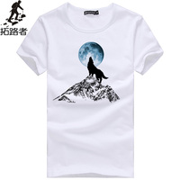 拓路者2015夏季男装纯棉短袖T恤男圆领体恤衫潮 宽松大码白色t桖