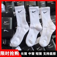 白色袜子女中短筒袜夏季短袜纯棉潮纯色运动男袜春秋薄款中筒男士
