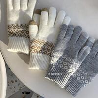 新手套女男冬保暖加绒ins日系雪花针织五指骑车防风触屏毛线手套