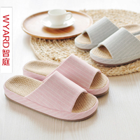 智庭拖鞋夏季居家条纹盆底地板凉拖情侣亚麻拖鞋女夏防滑家居拖鞋