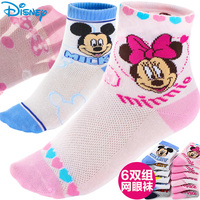 儿童袜子纯棉透气网眼6双组 迪士尼春夏精梳棉男童女童宝宝薄袜子