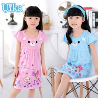 uika夏季新款女童睡裙 中大童空调家居服儿童睡衣 纯棉卡通亲子装