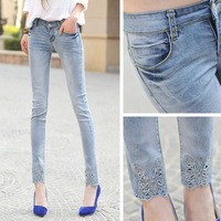 春季新款2015九分牛仔裤女小脚裤蝴蝶9分裤韩版修身显瘦铅笔裤潮
