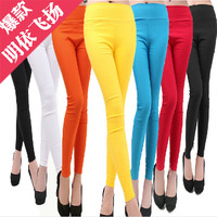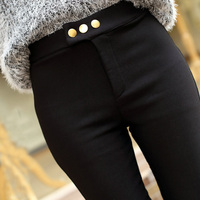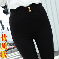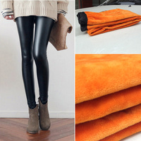 加绒加厚14秋冬欧美紧身高腰显瘦百搭女裤保暖小脚九分皮裤打底裤