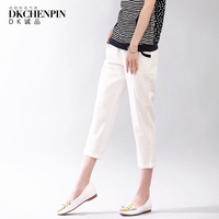 DK诚品白色七分裤胖mm夏装裤子夏天7分休闲裤宽松大码女裤哈伦裤