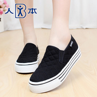 人本帆布鞋女春2015平底一脚蹬懒人鞋白色厚底学生布鞋黑色夏女鞋
