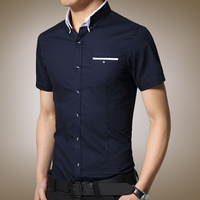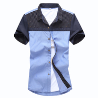 斯拉达龙夏季新款短袖衬衫男士韩版修身波点拼接青年衬衣男装潮