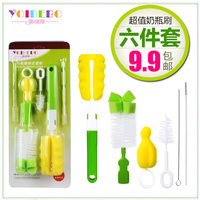 咦抱抱奶瓶刷6件套 清洗刷宝宝奶嘴刷吸管刷套装海绵尼龙杯刷子