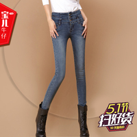 2015春新款高腰牛仔裤女春秋修身显瘦小脚裤韩版潮弹力铅笔长裤子