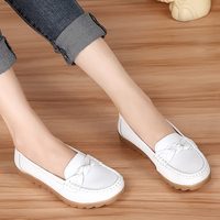 春季平跟豆豆鞋圆头真皮女鞋妈妈鞋浅口牛筋底护士小白鞋女单鞋
