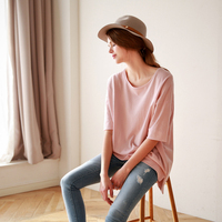 优莱姿2015欧美 夏装中袖两穿 宽松大码纯棉圆领纯色T恤