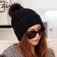 ZIYI 新款帽子 女 冬天韩版时尚休闲帽 护耳保暖球球毛线帽 潮