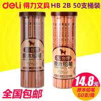 得力文具 原木桶装铅笔50支 小学生铅笔 六角形写字木质铅笔包邮