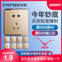 优狐香槟金开关插座套餐86型墙壁电源一开五孔单双控开关面板家用