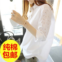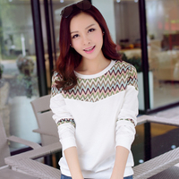 2015春秋新款韩版蕾丝长袖T恤衫棉圆领卫衣女宽松大码女装上衣服