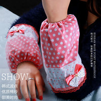 韩版女冬季长款袖套 双层防水蕾丝护短款套袖 防污居家日用袖套